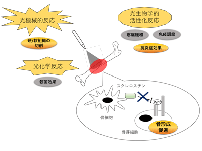 レーザーは人工的につくられた光で、日常生活に幅広く応用されており、医療にも用いられている。今回の研究で使用されたEr:YAGレーザーは、水への吸収が強く、発熱が少ないので、硬組織・軟組織の切削に優れている。歯科治療においても虫歯治療や歯周治療、インプラント治療に用いられ、治療の有効性についても報告されている。研究グループは、レーザー照射による骨切削は従来の機械的切削と比較して新生骨形成に優れていることを報告してきたが、そのメカニズムはいまだ不明だった。