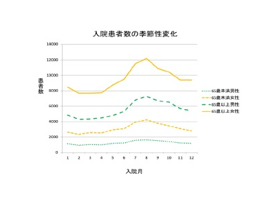 また、過去の研究でも夏に尿路感染症が多いことがわかっていたが、今回の研究でも夏に多いことが確かめられ、さらに年代や性別によらないこともわかった。冬に死亡率が高いこともわかった一方で、なぜ季節による変化があるのかについてはわからず、今後の他の研究が待たれる。