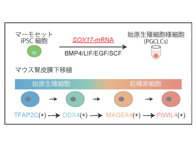 SOX17遺伝子のmRNAを使用してPGCLCsを作製、生殖細胞発生過程をほぼ忠実に再現
