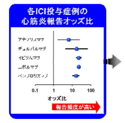 免疫チェックポイント阻害剤(ICI:Immune Checkpoint Inhibitors)は、使用にあたってさまざまな副作用が起こることが知られている。特にICI関連心筋炎は、発症する頻度は非常に低いものの、発症後の致死率が高い。一方で、このように致死的な副作用であるにも関わらず現状では確立した治療法がなく、ICI関連心筋炎を発症させない予防的取り組みとして、ハイリスク患者の把握の必要性が高まっている。