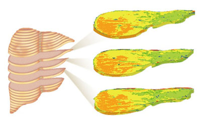 MRIの肝臓画像全断面、全ポイントを評価する脂肪肝評価法