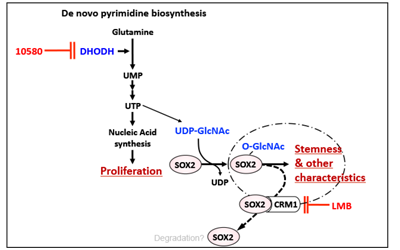 その結果、化合物ライブラリースクリーニングにより、TMZ耐性神経膠芽腫幹細胞に細胞増殖抑制、細胞死、幹細胞性欠失を誘導する化合物10580を同定した。リガンドフィッシング法により、10580の標的因子が、ジヒドロオロト酸デヒドロゲナーゼ(DHODH)であることを決定した。これはピリミジンの新規合成経路の化学反応を触媒する酸化還元酵素で、ミトコンドリアの内膜に存在する。さらに、TMZ耐性神経膠芽腫幹細胞を移植した胆がんマウスを用いて、10580が強い抗腫瘍効果を発揮することを確認した。10580はさまざまな正常細胞に低毒性であり、投与したマウス個体に懸念される副作用を示さなかったという。