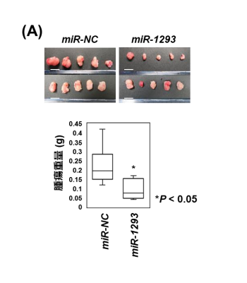 また、最も抗腫瘍効果の高かったmiR-1293について、in vitro/vivoにおいて核酸抗がん薬としての可能性を評価した。miR-1293を導入すると、顕著にがん細胞の細胞死を誘導し、BRD4の抑制に加えて、DNA修復経路に関わる複数の遺伝子(APEX1、RPA1、POLD4)を直接の標的とし、それら機能を抑制することが判明。その結果、miR-1293を導入すると損傷DNAの修復が抑制され、DNA障害のマーカーγH2AXが蓄積することが示された。マウス皮下腫瘍モデルを用いたmiR-1293の治療実験では、腫瘍周囲にmiR-1293を局所投与すると、miR-1293治療群において腫瘍の成長が著しく抑制されることが示された。