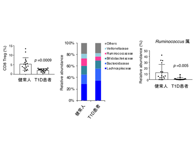 さらに、実際にT1Dの患者では血液中のCD8Tregが減少しているとともに、CD8Tregを誘導するRuminococcus属の腸内細菌が少ないことも明らかとなった。
