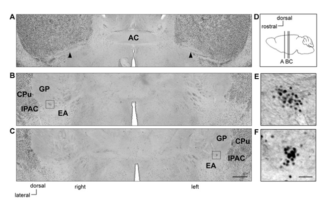 研究グループは今回、マウスにおいてストレス刺激に反応する神経細胞を、最初期遺伝子の発現によって探索し、大脳基底部のレンズ核下拡大扁桃体(sublenticular extended amygdala, SLEA)という領域に、GABA作動性神経細胞と、その他の細胞から構成される最初期遺伝子Zif268/Egr1陽性の神経細胞クラスターを新しく発見し、「SLEA-zNC(sublenticular extended amygdalar Zif268/Egr1-expressing neuronal cluster)」と名付けた。SLEA-zNCはストレス刺激に応じて細胞の活動性が増大し、その反応が抗不安薬のジアゼパムによって抑制されたので、ストレス情報処理に関わる神経回路に参加していると考えられる。
