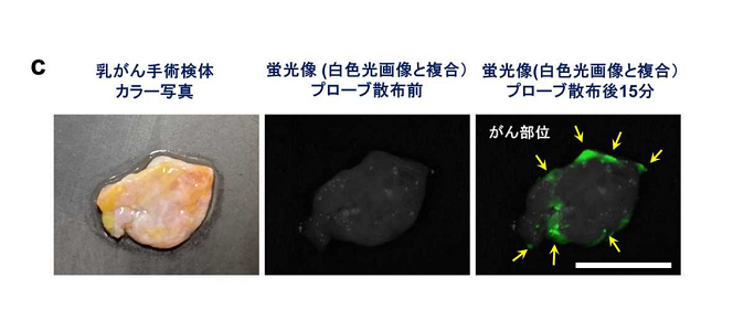 今回開発したMAN2C1の活性を光らせる蛍光プローブは、迅速かつ高い精度で微小な乳がんを光らせることが可能であり、乳がん手術で切除した部位の断端などに散布することで、がんの取り残しがないかをその場で迅速に確認する試薬として応用できる可能性がある。「開発した蛍光プローブ群は、乳がん以外のがん種においても同様な評価を実施することで、新たながん組織を光らせる蛍光プローブと、その標的酵素の探索に応用できることが期待される」と、研究グループは述べている。