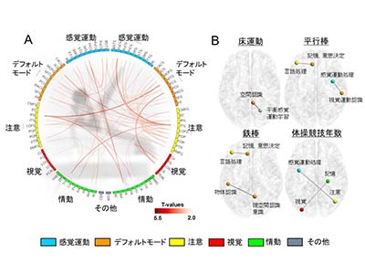 MRIの脳ネットワーク解析により、現役体操競技選手と競技経験がない健常者を比較