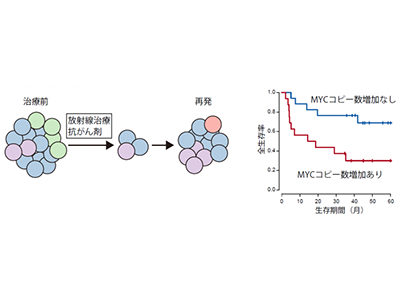その結果、治療前にMYC遺伝子のコピー数が増加している食道がんでは治療効果が低いことがわかった。公共のがん細胞株データベースにおいても、食道がんのMYCコピー数増加は放射線治療抵抗性と相関していた。さらに再発腫瘍のゲノムを時空間解析した結果、がんの進展に重要な役割を果たすドライバー遺伝子異常(MYCコピー数増加など)を持つがん細胞は治療後も生き残り再発の源になること、再発時に新たに獲得するドライバー遺伝子異常は少数であること、がんゲノムの進化に治療が与える影響が明らかになった。