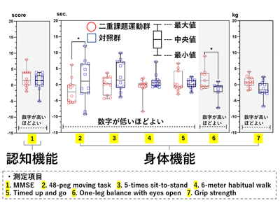 平均年齢89.9 歳、二重課題運動実施群で身体機能と認知機能の両方が改善