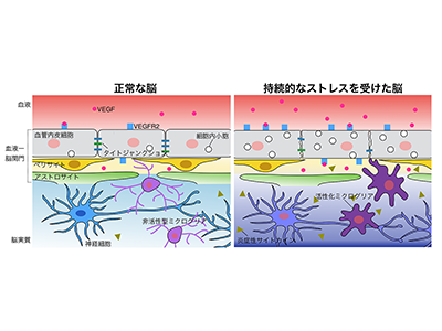 今回の研究成果により、慢性的なストレスによって血液脳関門の機能低下が生じ、それにより脳内炎症が引き起こされていること、そのメカニズムにVEGFが関与している可能性が示された。