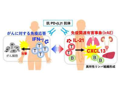 現在、がん免疫療法の主流となっているPD-1阻害療法は、がんに対する免疫を強く活性化すると同時に、通常は抑制されている自己の組織に対する免疫応答も同時に活性化するリスクがある。この免疫応答を介した自己組織の傷害はirAEと呼ばれ、がん免疫療法の副反応として、がん患者のさまざまな臓器に現れる。重篤な症状が発生する場合には治療の中断も余儀なくされるが、irAEの原因となる免疫応答の本体、およびその発生機序は明らかにされていない。