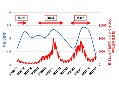 感染者数増加から1か月後に不安が増強、理由は「通院中のコロナ感染」など