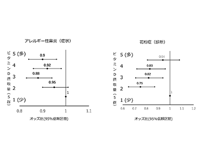 妊娠中のビタミンD摂取量が多いほど、3歳時点のアレルギー性鼻炎症状「低」