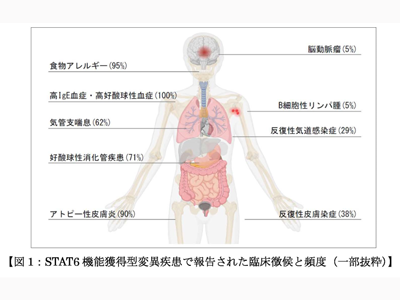 STAT6遺伝子の機能獲得型変異を有する患者13家系・21例を解析