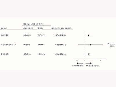 発症時刻が不明の脳梗塞患者について、専門的な頭部画像診断を用いると発症時刻が推定でき、それに基づいた患者選定を行い、tPA静注療法の効果を検証したところ、起床時発症脳梗塞と非起床時発症時刻不明脳梗塞のいずれの発症様式においても有効かつ安全であることが示された。今回の研究には、広範な脳梗塞の病巣や重篤な神経障害を有する患者、カテーテルを用いた血栓回収療法が選択される可能性のある患者などが含まれておらず、今後のさらなる検証が必要だ、と研究グループは述べている。(QLifePro編集部)