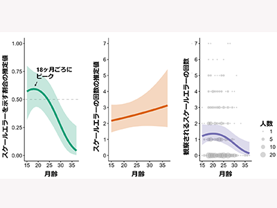 そこで今回、研究グループは、過去の複数の研究において日本や海外で収集されたスケールエラーデータ528人分を統合し、これに統計モデルであるゼロ過剰ポアソンモデルを用いて、スケールエラーの発達的変化をより適切に記述することを試みた。