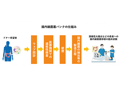 J-Kinsoバンクは、日本初となる腸内細菌を活用した医療技術や医薬品の開発を目的とした腸内細菌叢バンクだ。同バンクでは便を提供する腸内細菌ドナーを募集し、スクリーニングを実施する。適格となったドナーの便は腸内細菌の抽出などの製造工程を経て、FMTの臨床試験に使用される。またドナーの便を、腸内細菌を活用した医薬品の研究開発にも活用するとしている。