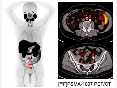 近年、狙った標的に結合する化合物に、標識する核種を変えることで、がんの診断から治療まで一貫して実施するセラノスティクス(Theranostics)が注目を集めている。前立腺特異的膜抗原(PSMA)は、PETを用いた画像診断から核医学治療まで展開可能なセラノスティクスの革新的な標的として注目されている。