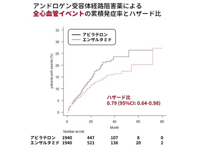 エンザルタミドは心血管死、主要心血管イベント、心筋梗塞の累積発生率が有意に低い