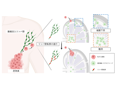 乳がんは、世界中の女性の中で非常に多く見られる病気で、多くの女性の命を奪っている。日本において年間約10万人が新たに乳がんと診断され、約1万5,000人が乳がんによって命を落としている。乳がんで最初に転移する臓器は腋窩リンパ節である。リンパ節の転移個数は予後と相関することが示されており、リンパ節転移を制御することは乳がんの予後改善において極めて重要である。