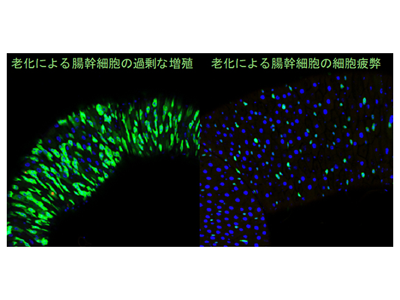 組織幹細胞は、体のさまざまな組織に存在する未分化な細胞であり、組織の維持や再生に寄与する。老化すると組織幹細胞の機能に異常が起こり、過剰に増殖してがん化したり、反対に正常な増殖能を失って幹細胞疲弊という状況に陥ったりすることが知られている。ヒトにおいて、細胞のがん化の分子機構は理解がかなり進んでいる一方で、老化に伴って起こる幹細胞疲弊の分子機構はまだ多くが不明である。以前、研究グループはショウジョウバエの腸幹細胞が老化によってがん化する機構を突き止めた。今回はこの実験系を用いて、老化に伴いどのような分子機構で幹細胞疲弊が起こるのかの解明に挑んだ。