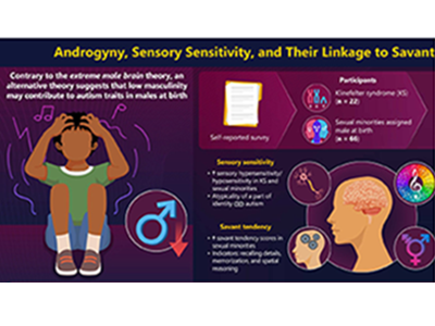 その結果、クラインフェルター症候群患者群では、対照第1群よりも高い感覚過敏/鈍麻の傾向を示した。再解析からは、性的マイノリティは共感覚者の割合が対照群より高く、いずれの解析でも性的マイノリティは対照群よりも高いサヴァン傾向および感覚過敏/鈍麻の傾向が認められた。特に、性別違和感のある状態は、共感覚、サヴァン傾向、感覚過敏/鈍麻といった、ASDで観察される特性と関連していた。