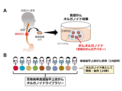 さまざまなESCC患者からのESCCO樹立により、効果的な個別化医療開発につながると期待