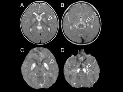 NBIAは、中枢神経における鉄沈着が生理的範囲を超えて沈着してくる疾患群。SENDA/BPANはNBIAの一型で、2010年前後に新たに提唱されてきた病型だ。小児期から精神運動発達遅滞が認められるものの、数十年間は非進行性に経過するため、小児期では脳性麻痺や原因不明の発達障害と診断されている例も多いといわれている。その一方、成人期では、20~30歳代になるとジストニア、パーキンソニズムが発症し、頭部MRI画像においても淡蒼球、黒質に鉄沈着を反映した所見を呈してくることも知られている。しかし、これまで小児期では、非進行性で特徴的な臨床症状はなく、検査所見でも頭部MRI画像を含め特徴的な所見を示さないとされてきた。