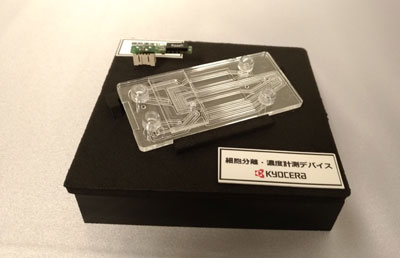 京セラ株式会社は9月4日、血液などから特定の細胞を自動で分離・濃度測定するチップ型の「細胞分離・濃度計測デバイス」の開発に成功したと発表。同日、都内でプレス向けの発表会を開催した。