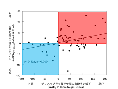 デノスマブ投与2年間で血清リン低下と腎機能改善を確認