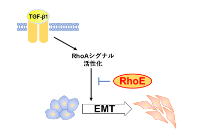 低分子量Gタンパク質「RhoE」は、アクチン細胞骨格の制御を介して細胞の運動などに寄与することが知られている。複数のがん細胞において、浸潤や転移との関わりが報告されているが、子宮頸がん細胞のEMTや転移における役割と機能についてはこれまでわかっていなかった。