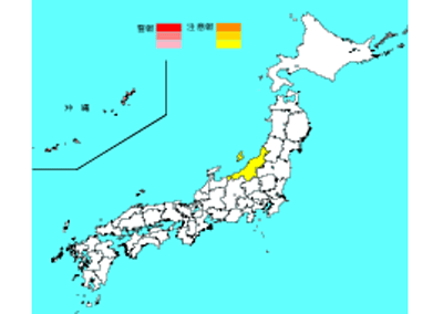 警報越えは沖縄2か所、注意報越えは新潟1か所