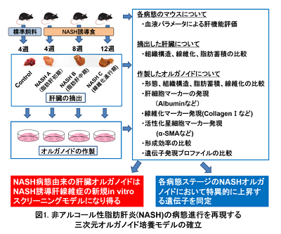 従来の手法に代わり、オルガノイド培養法でNASH病態進行の再現を試作