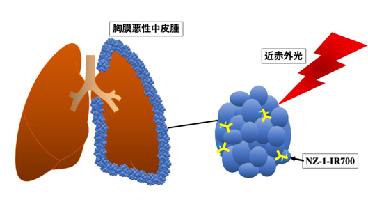 次に、NZ-1と水溶性光感受物質IRDye 700DX(IR700)の複合体を合成し、NZ-1-IR700を作製。NZ-1-IR700を用いて、ヒト悪性胸膜中皮腫がん細胞に対するNIR-PITを実施した。顕微鏡で観察した結果、近赤外光の照射後、速やかに細胞の膨張、破裂、細胞死が見られた。標的細胞(ポドプラニン陽性ヒトがん細胞)と非標的細胞(ポドプラニン陰性ヒトがん細胞)を共培養し、同時に近赤外光を照射したところ、標的細胞のみに細胞死が起こり、非標的細胞には特に影響がなかったという。マウスのがんモデルにおいて、経静脈的に薬剤を投与しても腫瘍部位に十分に薬剤が到達することが確認できた。また、マウスのがんモデルにおいて治療の結果、明らかな腫瘍の増大抑制が確認でき、マウス胸膜播種悪性中皮腫モデルにおいても顕著な腫瘍縮小効果が得られたという。