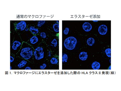 また、肺炎を誘導したマウスにおいて、分解されたMHCクラスII分子(マウスにおけるHLAクラスII分子の名称)が肺胞中に流れ出すことを明らかにしたという。また、この現象はエラスターゼ阻害剤を投与することで抑制されたとしている。