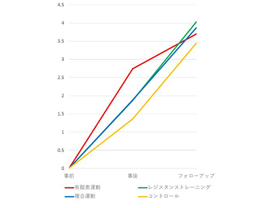 研究グループは今回、認知機能向上効果に関して報告数が多い運動要素として、「有酸素運動」と「レジスタンストレーニング」に着目。有酸素運動、レジスタンストレーニング、両者を組み合わせたプログラムの効果の違いについてランダム化比較試験により比較検証を行った。
