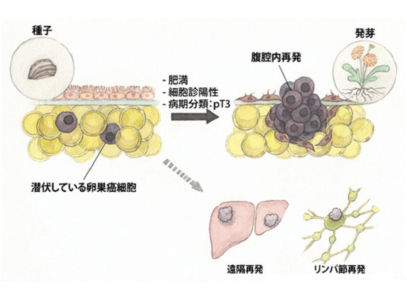 研究グループは以前より、卵巣がんの腹膜播種における「土壌」となる腹腔内環境と、「種」となるがん細胞との関係性に着目した研究を展開している。今回の研究では、腹腔内に潜伏するがん細胞から再発が起こる際に腹腔内の脂肪組織がどのような影響を与えるのかを、大規模な患者追跡予後調査と多角的な統計学的調整手法を用いて明らかにした。