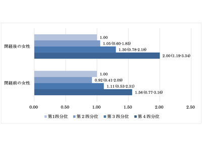 更年期以降に発症リスクが高くなる女性の糖尿病、閉経後の高尿酸血症との関連は不明
