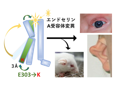 特定の遺伝子異常が原因の希少疾患はいろいろ知られているが、その発症メカニズムの多くは解明されていない。研究グループはこれまで、エンドセリン1やエンドセリンA受容体(ETAR)の遺伝子改変マウスにより、エンドセリン1ーエンドセリンA受容体シグナルが頭部神経堤細胞に作用して、頭部顔面や心臓大血管の形成に重要であること、特に顎顔面形成においては、エンドセリンシグナルが核転写因子Dlx5/6の誘導を介して上顎下顎を決定することを明らかにしてきた。一方、パリのネッカー小児病院の研究グループは、耳介、顔面の形態異常や難聴を示す「脱毛症を伴う顎顔面骨形成不全症」の症例の中に、エンドセリンA受容体の1塩基変異:G→A、アミノ酸ではグルタミン酸からリジンへの変異(E303K)があることを次世代シークエンサー等で見出した。