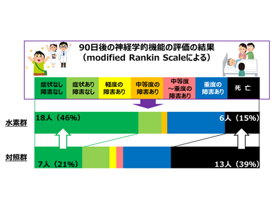 後遺症がなく回復したのは水素群46%、対照群21%、生存率も対照群より上昇