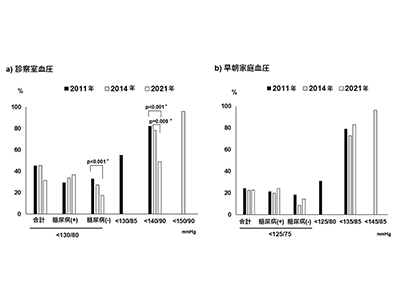 研究では、2021年9月~2022年3月までにJ-DOMEに登録された高血圧患者(糖尿病合併も含む)のうち、神奈川県の医療機関から登録された患者830人を2021年調査の対象とした。さらに、神奈川県内科医学会が過去に実施した2011年調査826人、2014年調査1,098人を比較対象として解析に加えた。
