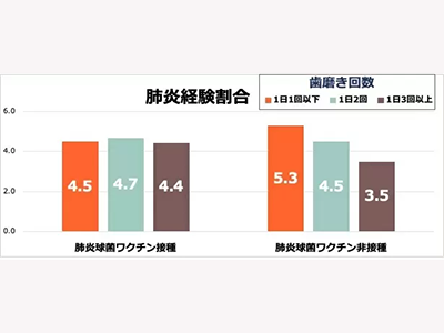 ワクチン未接種群、歯みがき頻度1日3回以上に対し1日に1回以下では肺炎経験1.57倍高