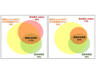 高い枕の基準は外部専門家の意見から、12cm以上を高値、15cm以上は極端な高値と定義。同時に、枕の硬さや先行研究から椎骨動脈解離に悪影響を及ぼす可能性が示されている首の屈曲の有無についても調査した。高い枕の使用と特発性椎骨動脈解離の発症との関連を調べるとともに、起床時発症で軽微なものも含め、先行受傷機転のない、臨床的に高い枕の使用が発症原因として疑わしい患者の割合も調査した。