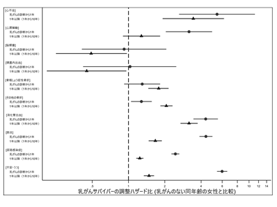 日本の乳がんサバイバー約2.4万人、乳がんのない同年代女性約9.6万人を対象に検討
