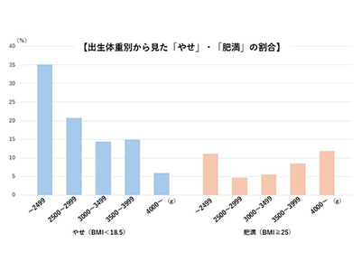 出生体重や乳児期の体重増加量が、成人期の肥満・やせに与える影響は?