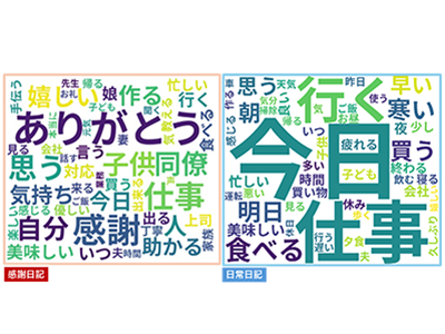 一方、日常日記群では「寒い」「終わる」「悪い」など、感情的に中立またはネガティブな語が特徴語として見られた。このことは、感謝に注意を向ける意図的な姿勢がなければ、「ありがとう」や「感謝」といった言葉は自然には出てこなかったことを示している。すなわち、感謝を記録するという行為自体が、仕事の環境や周囲の人々から得ている支援など、自身の「仕事の資源」に改めて気づくプロセスになっていると考えられる。